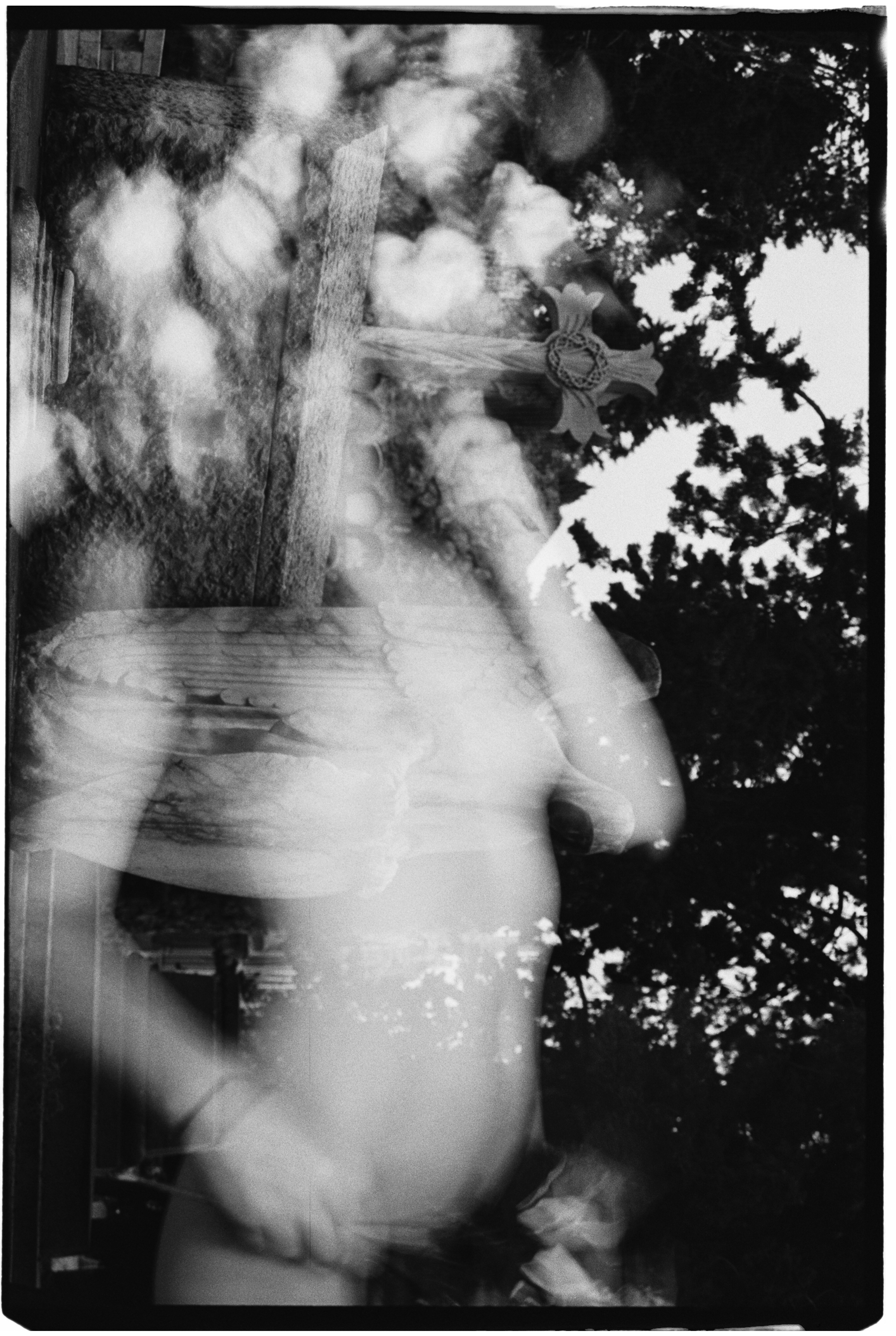 Las fotografías exploran la dualidad de la existencia femenina a través de recuerdos y emociones. Se produce una experimentación fotografía analógica superpuesta, tejiendo una narrativa sobre la transición entre la vida y la muerte, utilizando el abuso como metáfora visual.